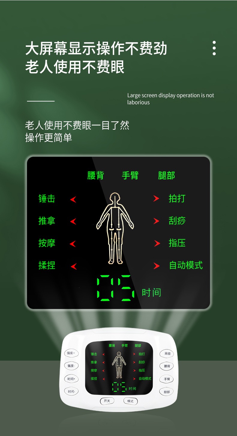 Multiple therapy modes: tapping, kneading, acupuncture, cupping, and more